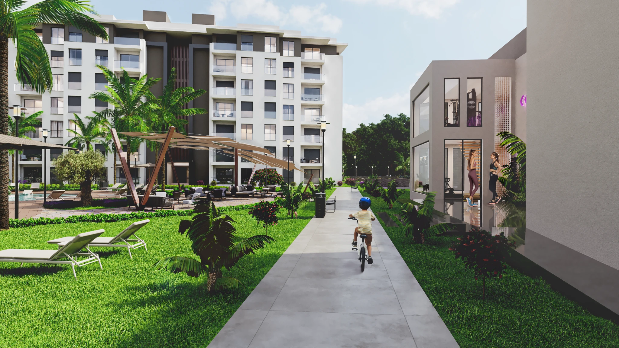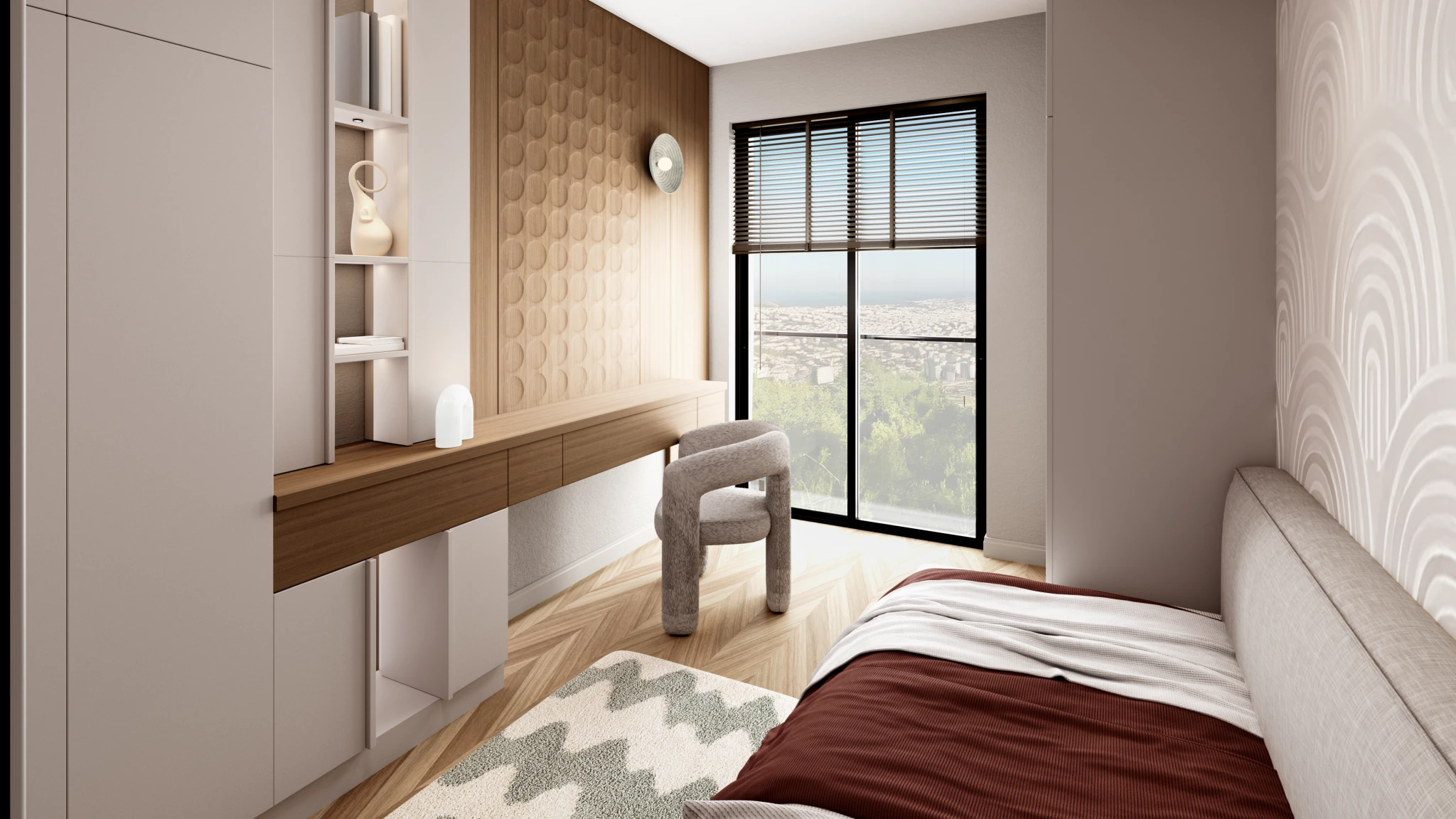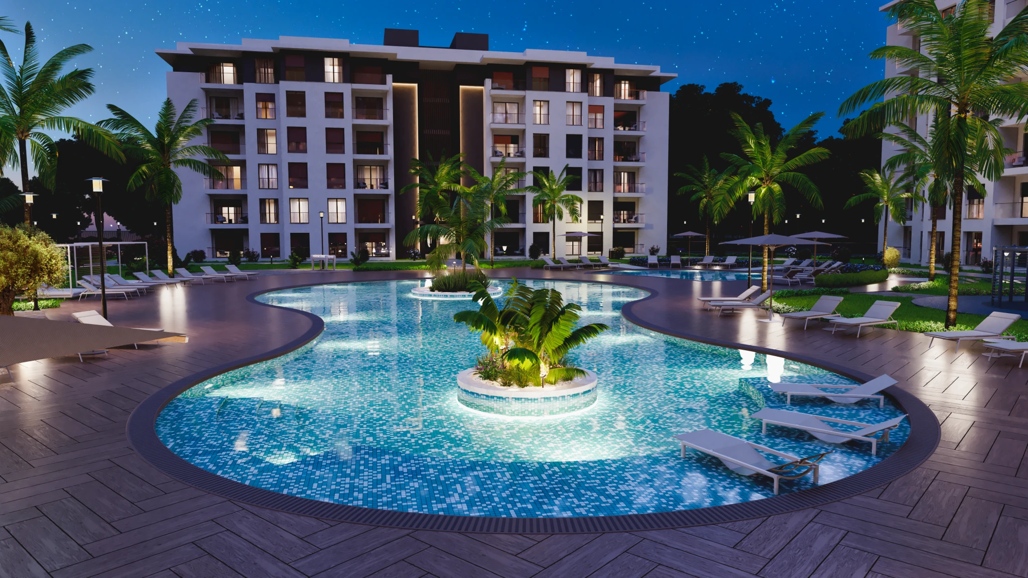 The landscape design harmoniously merges nature and comfort, creating serene spaces for relaxation. The living areas are enriched with artistic details that emphasize the exclusivity of the complex. Lush green zones bring tranquility, while pools and leisure areas offer a luxurious Antalya-style retreat.